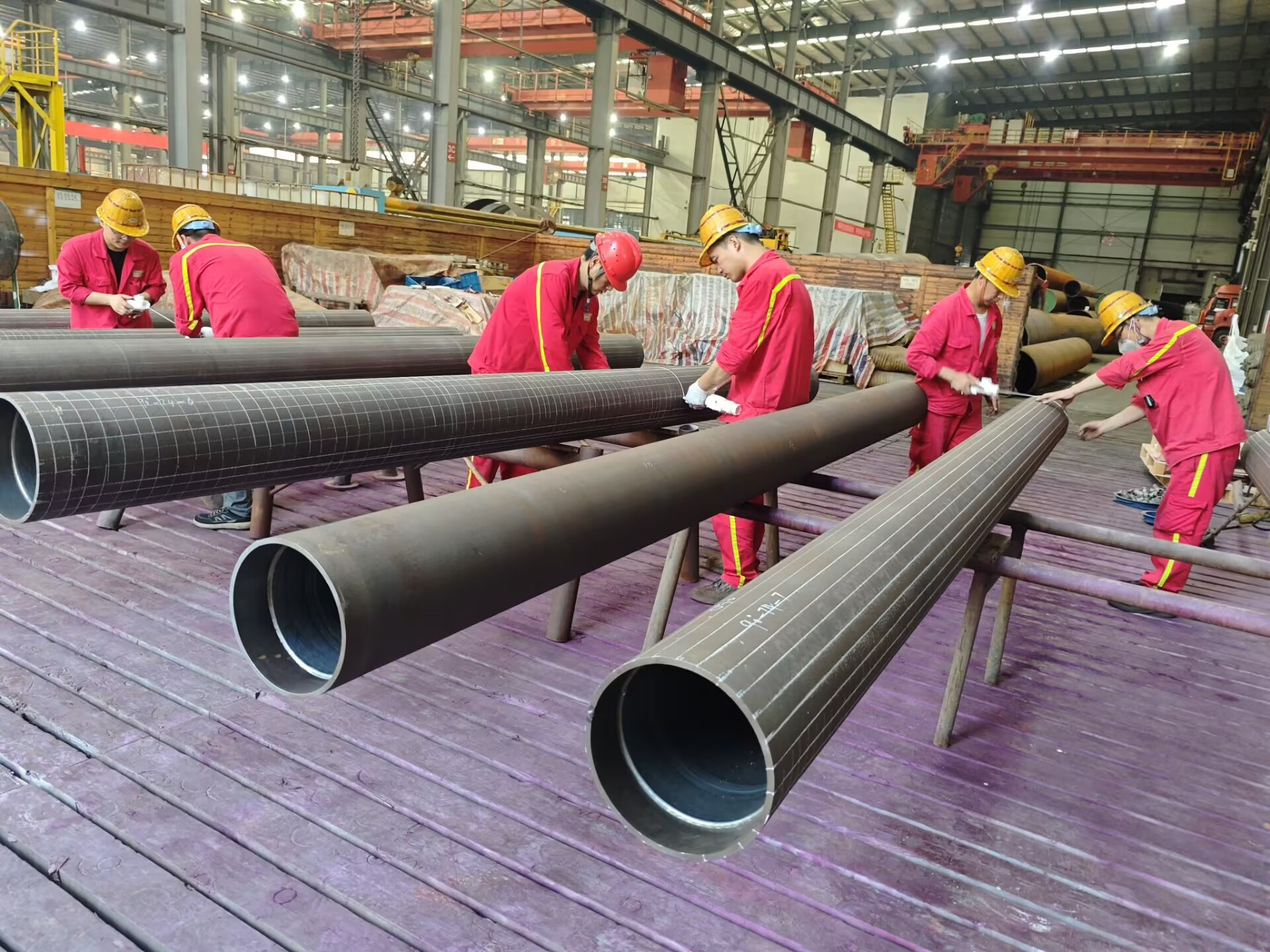 萬(wàn)達(dá)重工子公司dan黨支部活動(dòng)情況:一、8月13日晚上18:30至20:00,第四黨小組開(kāi)展了“助力生產(chǎn)”活動(dòng)?;顒?dòng)中,黨小組成員協(xié)助堆焊事業(yè)部生產(chǎn)人員,對(duì)里木油田牙哈儲(chǔ)氣庫(kù)項(xiàng)目的8根管道進(jìn)行劃線工作。