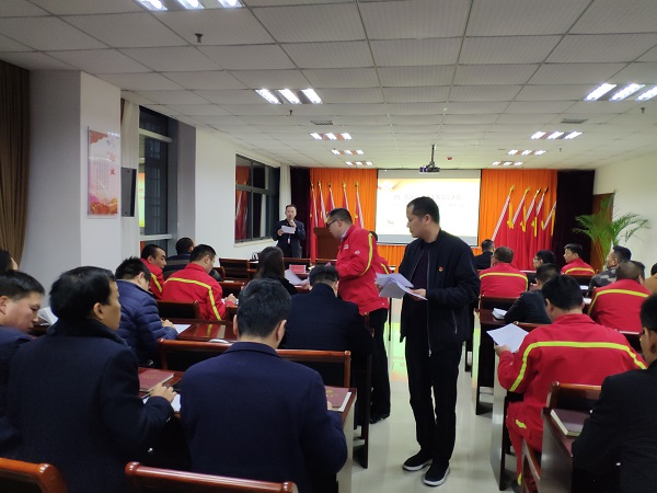 該次學習活動由萬達重工黨總支副書記于江山同志主持,共有五項議程。會議開始,首先全體參會人員共唱國歌;接著黨總支書記何清同志帶領(lǐng)大家重溫入黨誓詞;然后萬達重工子公司黨支部書記李懷剛同志對其黨支部的2名預備黨員轉(zhuǎn)正式黨員情況進行了匯報;接下來召開了萬達重工黨支部黨員大會,大會討論并投票選舉通過2名發(fā)展對象轉(zhuǎn)預備黨員決議;隨后分別由靳奎同志、劉超越同志、白笑棠同志、張夢珠同志帶領(lǐng)大家集中學習《中共鄭州市委關(guān)于以習近平新時代中國特色社會主義思想為指導全面推進黨的建設(shè)高質(zhì)量發(fā)展的實施意見》。
