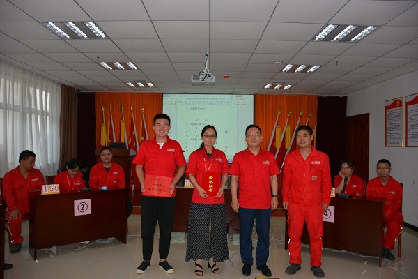 競賽圍繞黨的十九大精神、習(xí)近平新時(shí)代中國特色社會(huì)主義思想、《黨章》、公司企業(yè)文化、學(xué)習(xí)強(qiáng)國等內(nèi)容開展知識(shí)問答。必答題、搶答題、風(fēng)險(xiǎn)題、觀眾搶答題等知識(shí)環(huán)節(jié)設(shè)置,使得整場比賽氣氛熱烈,各代表隊(duì)陣容齊整,斗志昂揚(yáng),才思敏捷,在必答題環(huán)節(jié)就進(jìn)入了激烈比拼,各隊(duì)比分交替上升,參賽選手對(duì)黨章、黨史、國史、企業(yè)文化等諸多題目對(duì)答如流。最終,經(jīng)過激烈的角逐,黨總支第三黨小組獲得本次競賽第一名,第五黨小組獲二名,第四黨小組獲三名。
