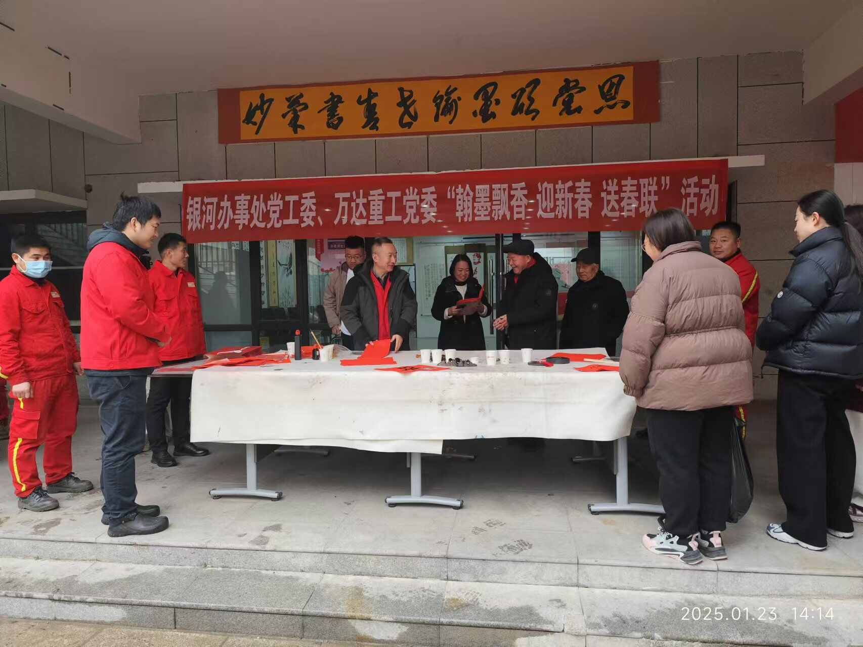 2025年1月23日下午13:30--15:00,萬達(dá)重工黨支部第二黨小組代表萬達(dá)重工黨委,聯(lián)合銀河辦事處黨工委在裕祥社區(qū)文化廣場(chǎng)聯(lián)合舉辦了“翰墨飄香迎新春、送春聯(lián)”活動(dòng)。