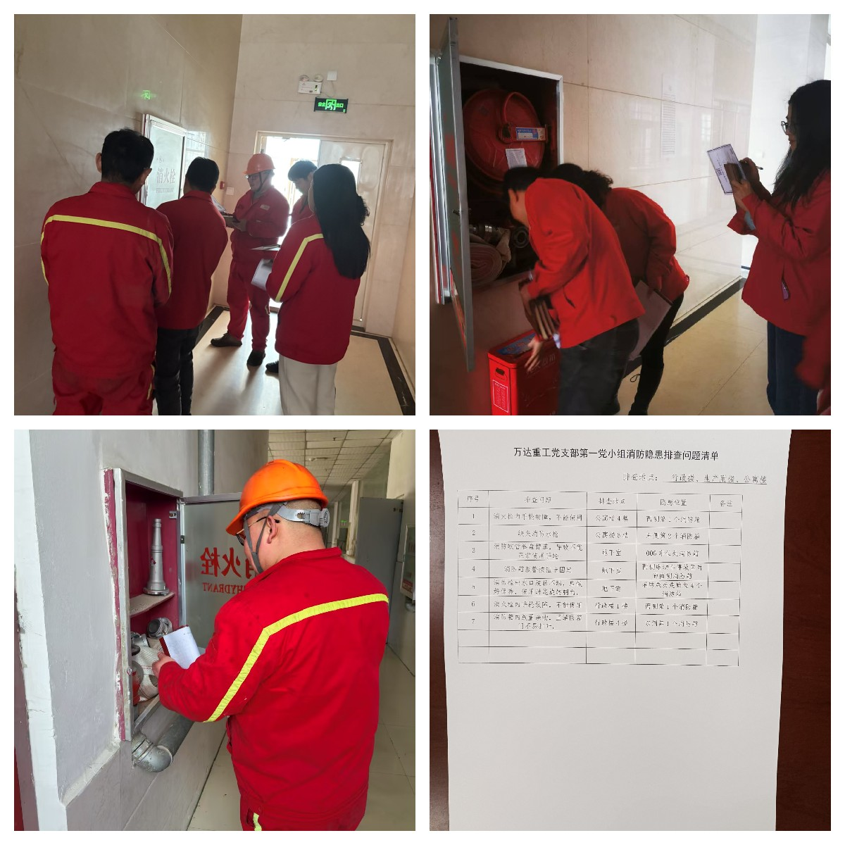 萬(wàn)達(dá)重工黨支部活動(dòng)情況:3月12日中午12:40-13:30,第一黨小組開展了“消防器材排查”活動(dòng),對(duì)廠區(qū)行政樓、公寓樓、生產(chǎn)附房等人員密集場(chǎng)所的消火栓、滅火器等消防器材進(jìn)行排查。