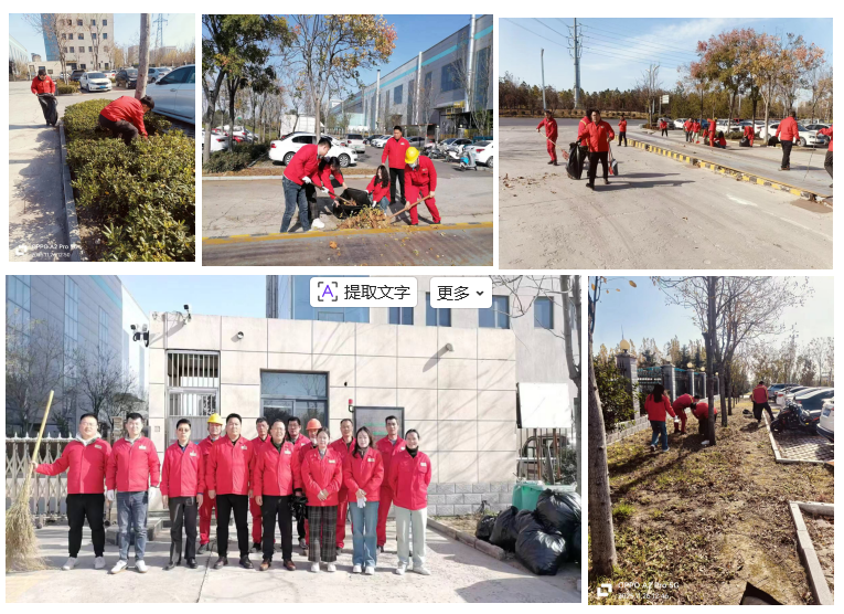 萬達重工子公司黨支部活動情況:11月26日中午,第四、第五黨小組利用午休時間聯(lián)合組織了園區(qū)外停車場清潔活動,對西南門停車場堆積的落葉與雜物進行了集中清理。