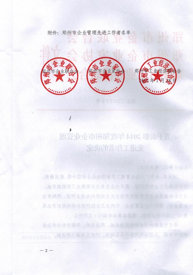 熱烈祝賀我公司白楊同志獲得鄭州市企業(yè)管理先進工作者稱號
