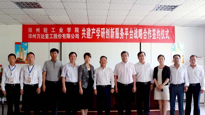 2016年9月21日,由鄭州萬(wàn)達(dá)重工股份有限公司與鄭州輕工業(yè)學(xué)院共同建立的產(chǎn)學(xué)研創(chuàng)新服務(wù)平臺(tái)戰(zhàn)略合作簽約揭牌儀式在鄭州萬(wàn)達(dá)重工股份有限公司順利舉行。