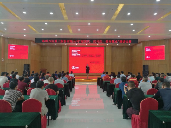 為迎接新中國(guó)成立70周年暨慶祝鄭州萬(wàn)達(dá)重工股份有限公司成立20周年,進(jìn)一步活躍員工文化生活,提升團(tuán)隊(duì)凝聚力,充分展現(xiàn)萬(wàn)達(dá)員工風(fēng)采風(fēng)貌,2019年9月29日下午,鄭州萬(wàn)達(dá)重工股份有限公司在多功能廳舉辦了“迎國(guó)慶、慶司慶,愛(ài)崗敬業(yè)”演講比賽,股份公司董事長(zhǎng)、書(shū)記何清等公司領(lǐng)導(dǎo)出席該活動(dòng),股份公司、子公司全體員工參加了活動(dòng)。