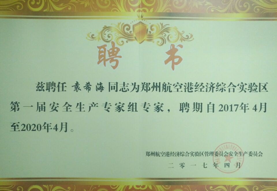 熱烈祝賀鄭州萬達重工股份有限公司總工程師袁希海同志成為第一屆鄭州航空港 經(jīng)濟綜合實驗