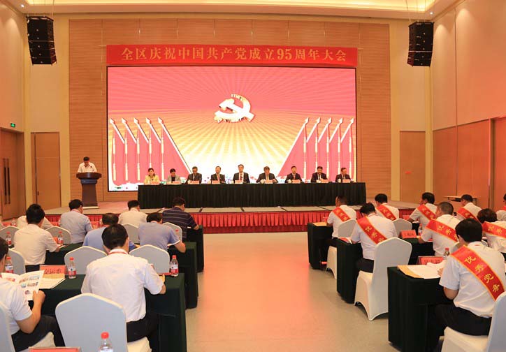 2016/07/06 755 2016年6月30日上午午,航空港實(shí)驗(yàn)區(qū)隆重召開慶祝中國共產(chǎn)黨成立95周年大會(huì),全區(qū)各區(qū)直委(部)、局辦、國企主要負(fù)責(zé)同志,各辦事處(社區(qū)服務(wù)中心)黨工委書記,各行政村(社區(qū))黨組織書記,企事業(yè)單位黨組織書記,受表彰的單位代表和優(yōu)秀共產(chǎn)黨員、優(yōu)秀黨務(wù)工作者約400人參加大會(huì)。大會(huì)由區(qū)黨工委副書記、管委會(huì)主任馬健主持,鄭...