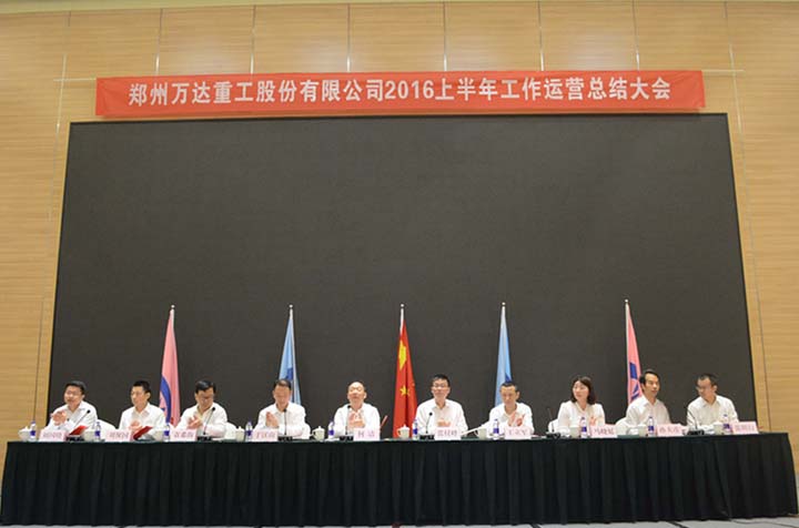2016/07/20 1187 7月19日上午鄭州萬達(dá)重工股份有限公司2016上半年工作運(yùn)營總結(jié)大會(huì)在航空港區(qū)中部國際電子商務(wù)產(chǎn)業(yè)園隆重圓滿召開,參加會(huì)議并在主席臺(tái)就座的的領(lǐng)導(dǎo)分別為股份公司董事長、書記何清,股份公司董事、總經(jīng)理張付峰,股份公司監(jiān)事會(huì)主席、工會(huì)主席于江山,股份公司董事、副總經(jīng)理王立軍,股份公司監(jiān)事、總工程師袁希海,股份公司董秘、副總經(jīng)...