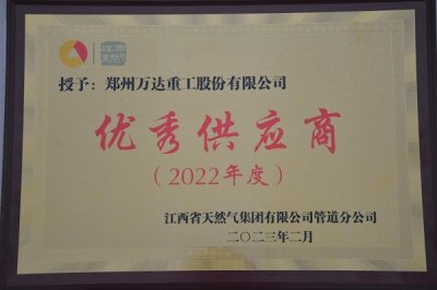 2023/04/13 710 近日,鄭州萬達重工股份有限公司收到了江西省天然氣集團有限公司管道分公司頒發(fā)的2022年度優(yōu)秀供應商榮譽獎牌,獲得該公司2022年度優(yōu)秀供應商榮譽稱號。業(yè)主方對公司所承接彎管項目的產品質量、交貨周期、售后服務等方面給予高度贊揚。 近年來,萬達重工始終秉承以客戶為中心,以市場為導向,以項目為抓手,以技術為支撐,以文化為引領...