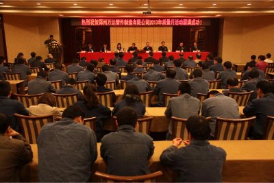 2016/03/15 575 歌聲嘹亮、旗幟飄揚(yáng)、群情激昂,2013年4月3日上午九點(diǎn),鄭州萬達(dá)管件制造有限公司隆重召開了2013年公司質(zhì)量月活動宣誓大會。鄭州市質(zhì)量技術(shù)監(jiān)督局尚副局長、肖處長、綜合保稅區(qū)(航空港區(qū))質(zhì)量技術(shù)監(jiān)督局王局長應(yīng)邀作為嘉賓出席了此次萬達(dá)質(zhì)量月啟動大會。 上午的啟動大會,員工統(tǒng)一了思想,統(tǒng)一了行動,對公司在市場競爭中起到了有...