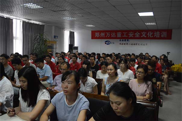 以人為本,打造幸福萬達,是萬達重工安全管理和安全文化建設的一個重要的原則。為提高員工安全意識,確保安全生產,鄭州萬達重工股份有限公司講師團昨日在公司會議室舉辦了 “安全文化建設宣貫培訓”。此次培訓由講師團執(zhí)行團長(工會主席)于江山授課,會場座無虛席。
